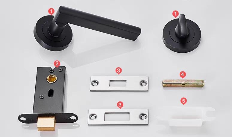 EH-LDL-004-R-S-BLK-1Side Tubular Lever Door Lock Without Key Set Measurement : D:60-70MM Material : Metal Finish : Black