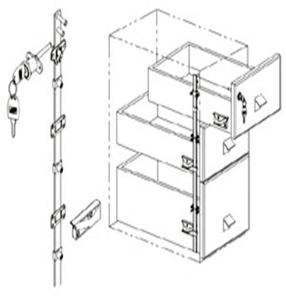 EH-FL288-Front Lock Mesurement: D: 19 * L: 600MM Material: Zinc alloy Finish: Nickel
