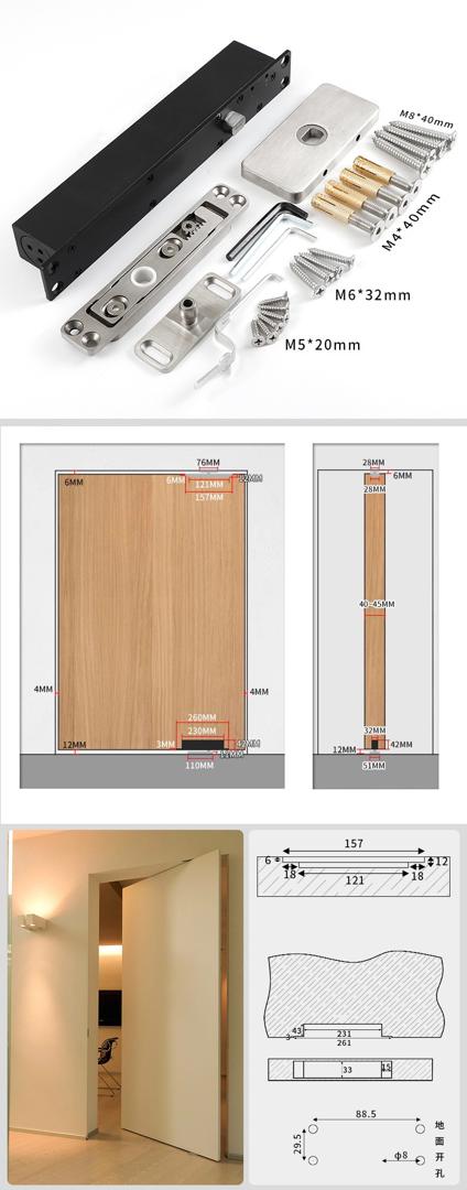 EH-DC-FL851-S-Door Closer Set (Side) Measurement: Max:W:1200*H:2800*T:32MM-100KGS Material : Steel Finish: Black