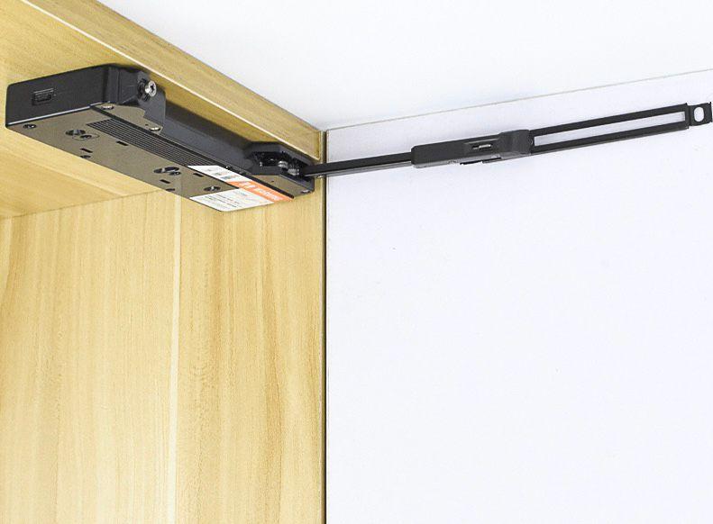 EH-DSTO-002-HEAVY DUTY- One Touch Push Opening & Soft Closing Door System Measurement : H:<2200 * W:<600 / Max Load:20KGS Material: Aluminium / Wood Finish : Black