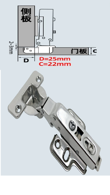 EH-DHSS201-135-2025-Soft Closing Hinge Stainless Steel 201 Measurement:Cover Side Panel 20-25mm Material : Iron With Nickel Plated Cup Diameter : 35mm Cup Depth:12mm