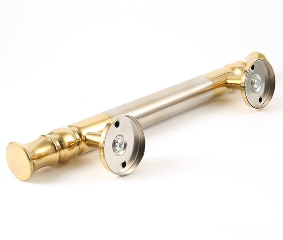 EH-SDH976-300-SS+GLD(FS) Stainless Steel 201 + Gold Front Screw Door Handle Measurement: L:300 D:25MM Material : Stainless Steel Finish: SS+GLD