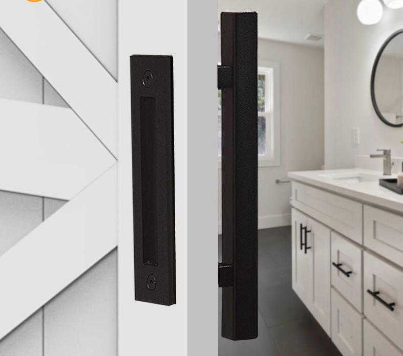EH-SDH972-300-BLK (FS) Front Screw Sliding Door Handle Set Measurement: L:300*D:19MM Material:Aluminium Finish:Black