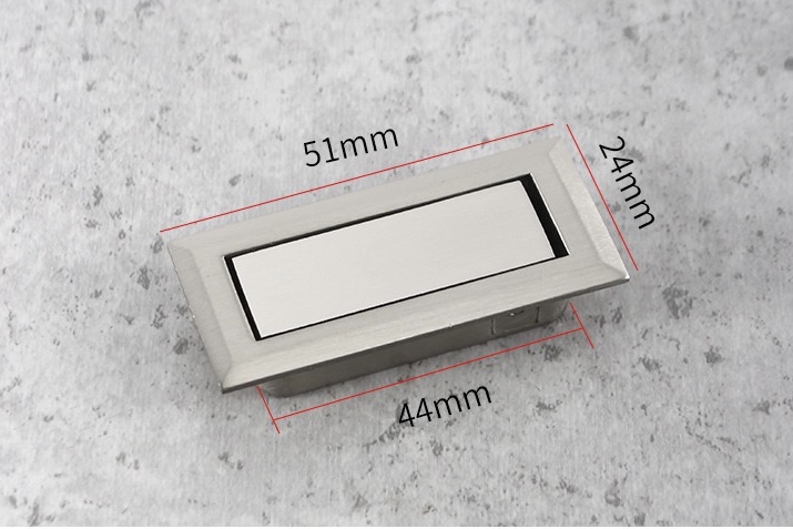 EH-296(M)-BSN-Flap Door Handle Measurement: L:51*W:24*IL:44MM*H:9MM Material: Steel poly Finish: Nickel