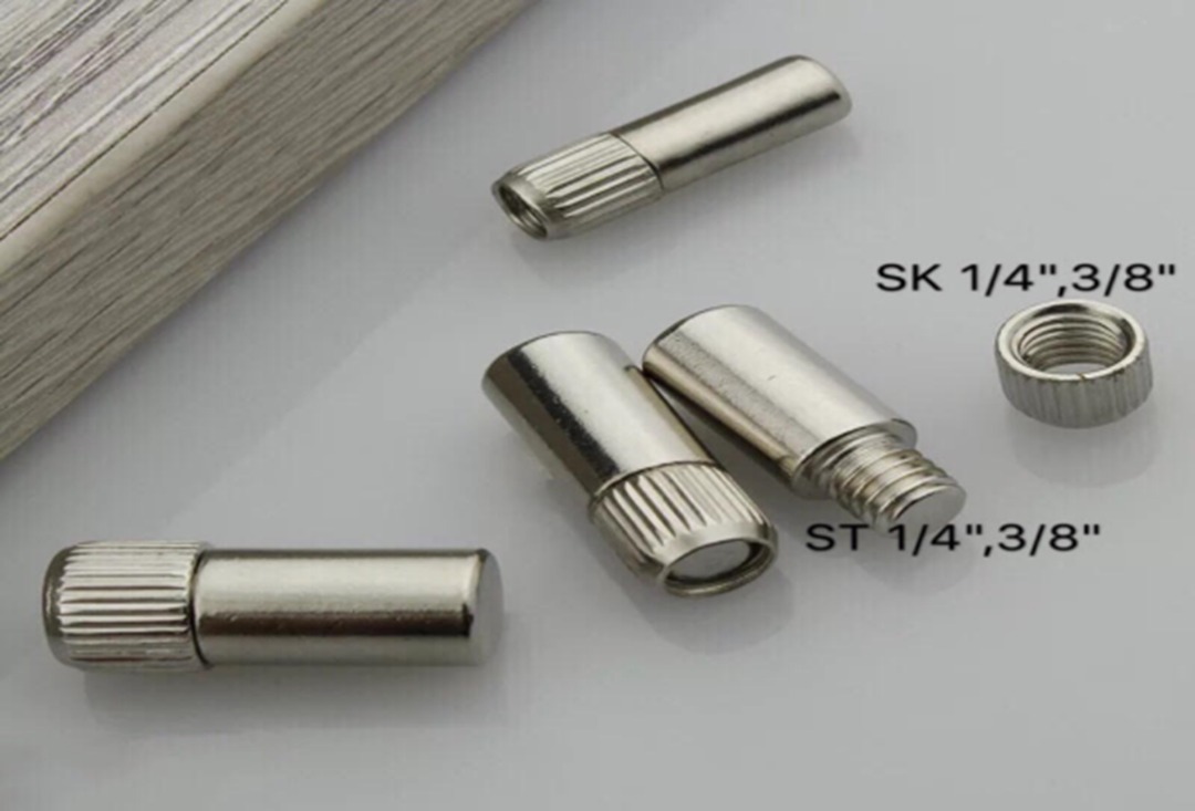 EH-Stud & Socket EH-ST154-1/4" or ST154-3/8" EH-SC154-1/4" or SC154-3/8" Measurement: ST154-1/4" W: 6MM ST154-3/8" W: 8.4MM SC154-1/4" W: 6.3MM SC154-3/8" W: 9.3MM Material: Iron Finish: Nickel