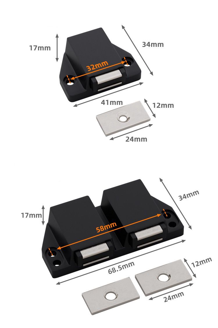 EH-SMS220-D-S-WHT Double Magnetic Spring Catch Measurement: TL:68.5*L:30MM*W:68.5*H:16MM Material: ABS/Steel Colour : White