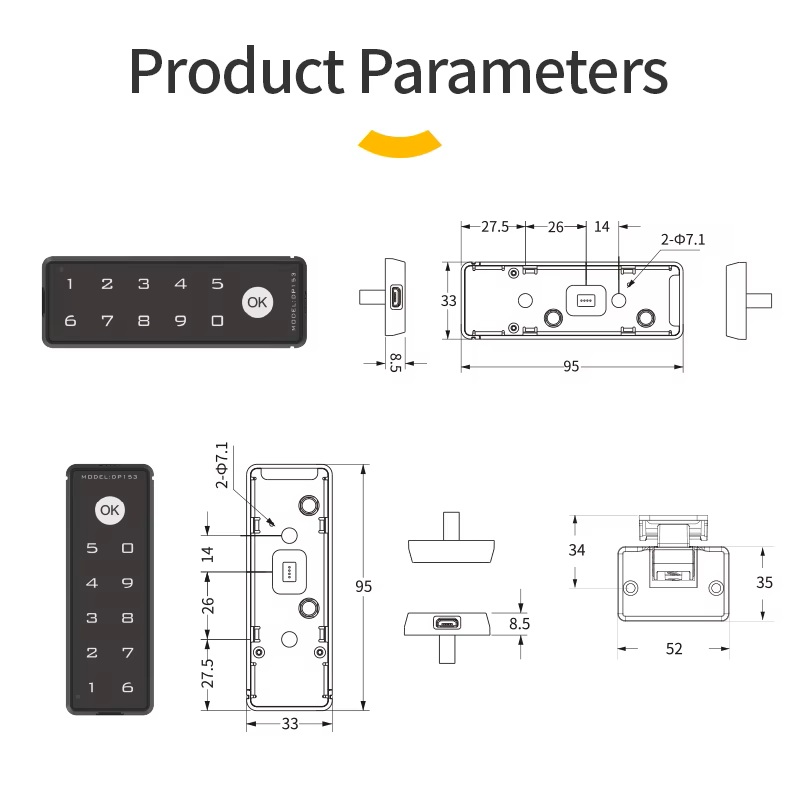 EH-DP153 HB-Horizontal Digital Lock With Fingerprint Material : ABS cover+Zinc alloy mortise Finish :Black