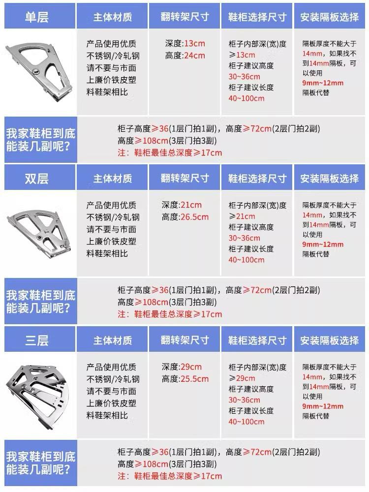 EH-SR001 S/Steel Shoe Swivel Rack-One Layer Measurement Cabinet Inner : D:210MM*H320MM Material : Stainless Steel Finish: Brush Nickel