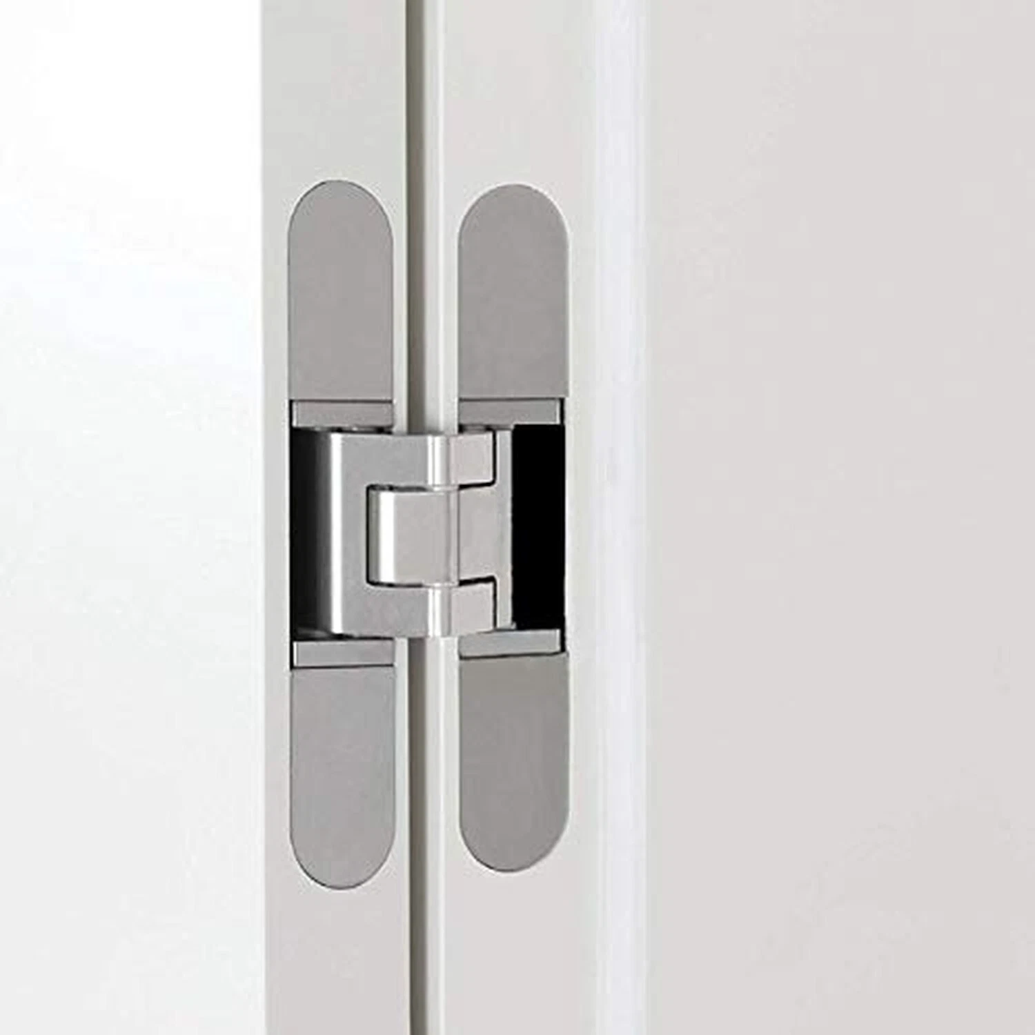 EH-IH134-3D-4"-SS 3D Invisible Concealed Hinge Adjustment Specifications: Material : Iron With Nickel Plating Max Opening Angle : 180° Max :80KG Measurement: H 160MM Material : Zinc Alloy Finish: Aluminum