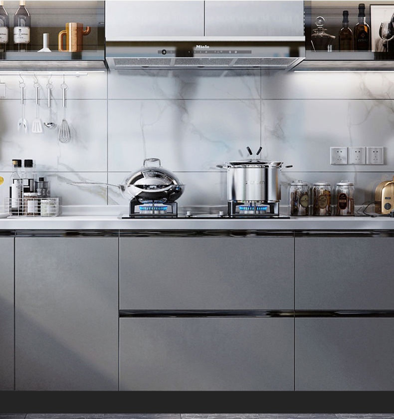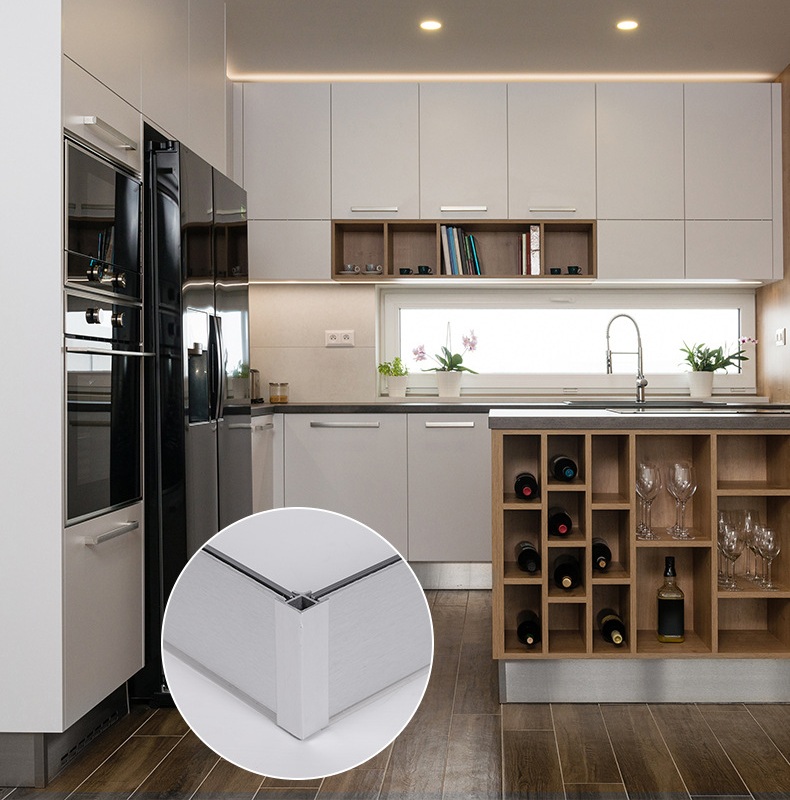 EH-SB100-AL+PVC Kitchen Cabinet Skirting Board Measurement : H:100*L:4M Material : Aluminum + PVC Finish : Silver, Black